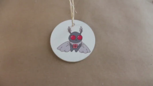 Moth man Present Gift festive Cryptic Ornament Collector Mythical Printed Keychain Giftable Gift for Him Gift for her Wooden