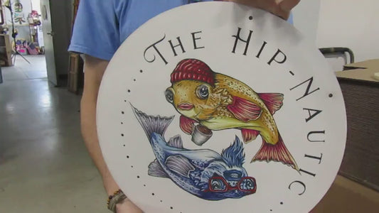 The Hip Nautic Goldfish Color Printed On Wood Logo Customized Personalized Nautical Professional Commerical Signage Lightweight Wood Sign