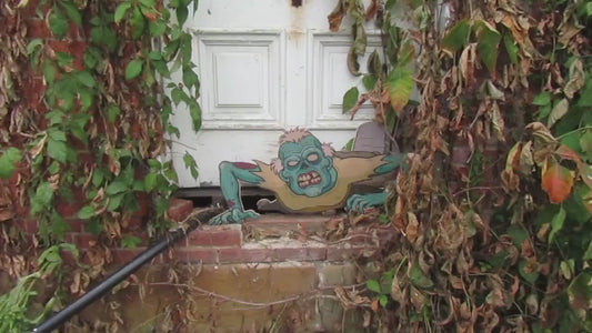 Zombie crawling from the ground scary happy Halloween yard decor great for trick or treat wood sign