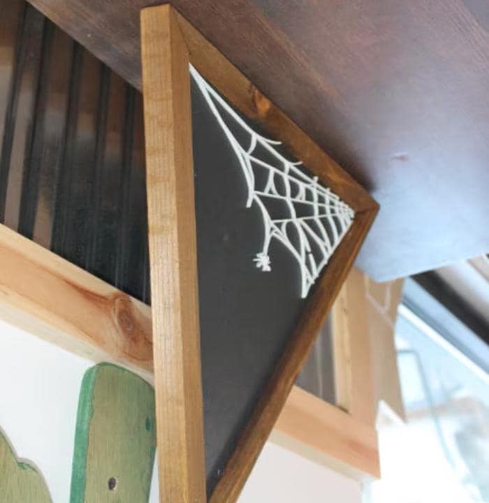 Web Spider Goth Arachnid Triangle Hanging Spider Art Decor Wooden Sign Halloween Farmhouse Scary Sign Fireplace Shelf Sitter Framed Black