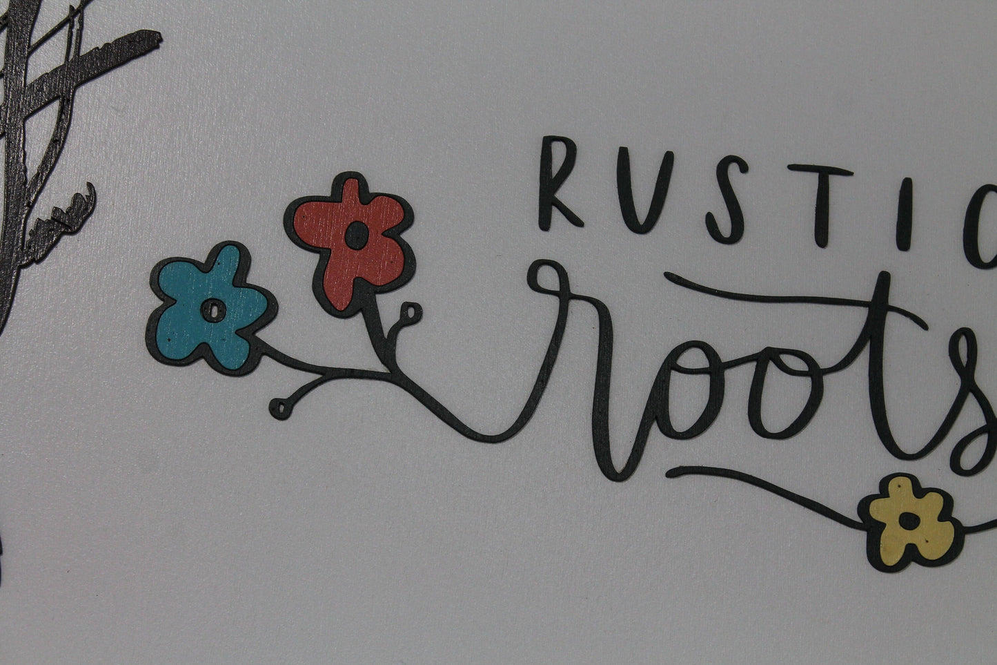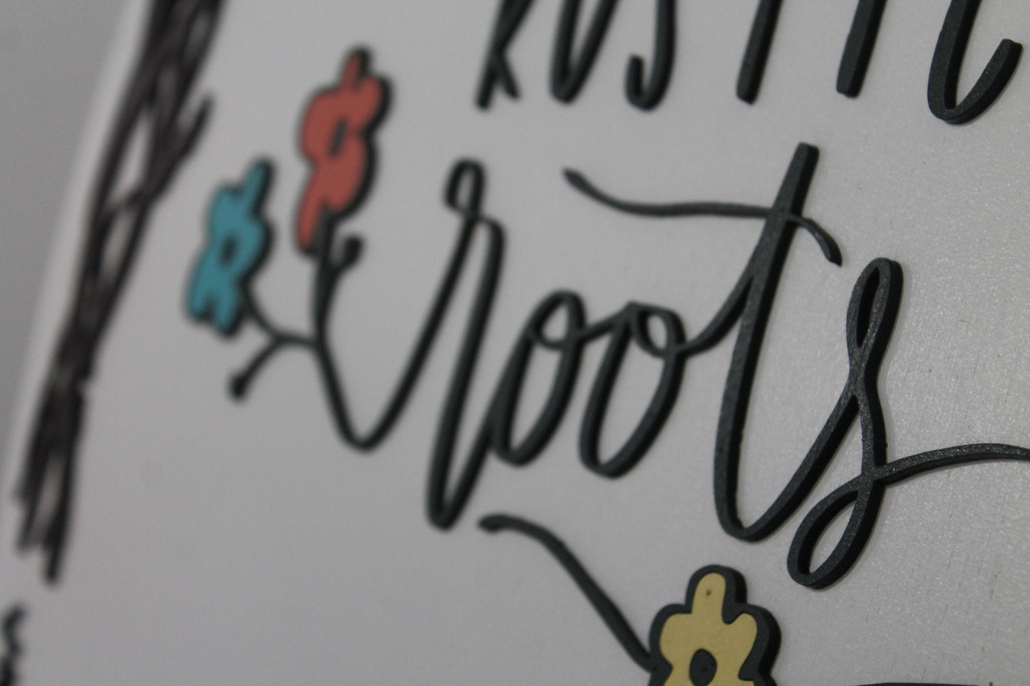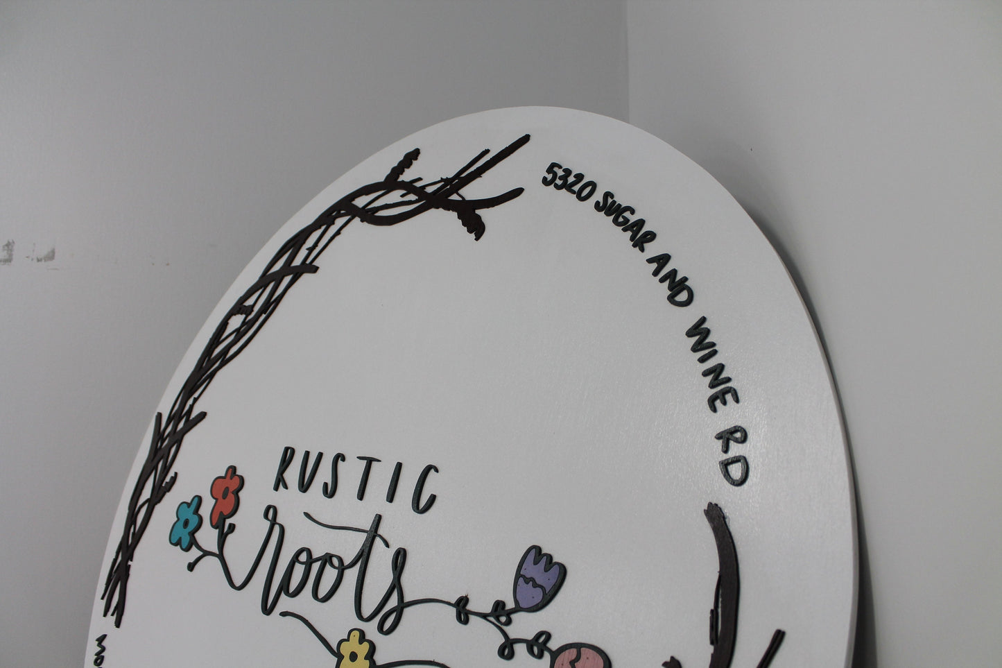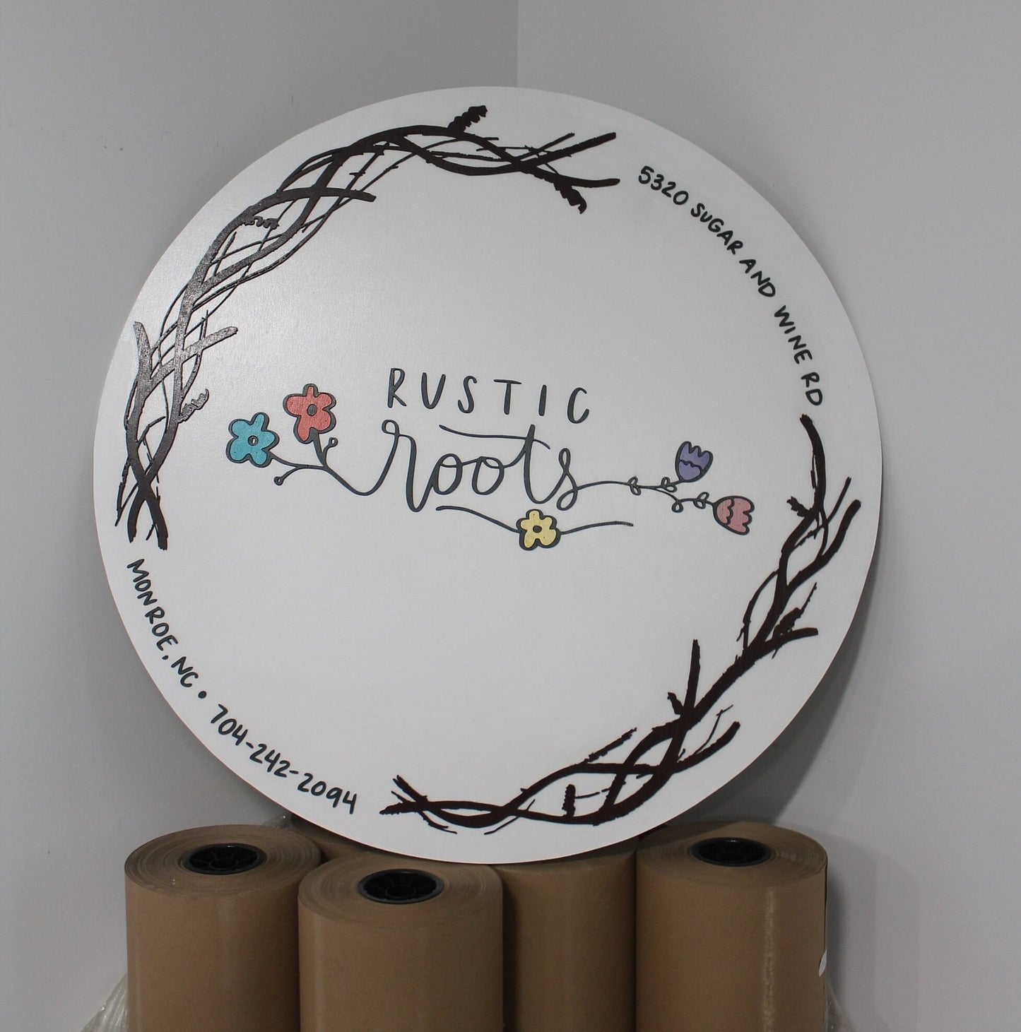 Custom Business Sign Round Rustic Roots Floral Hoop Branches Trees Made to Order Logo Circle Wooden Handmade Raised Text Home