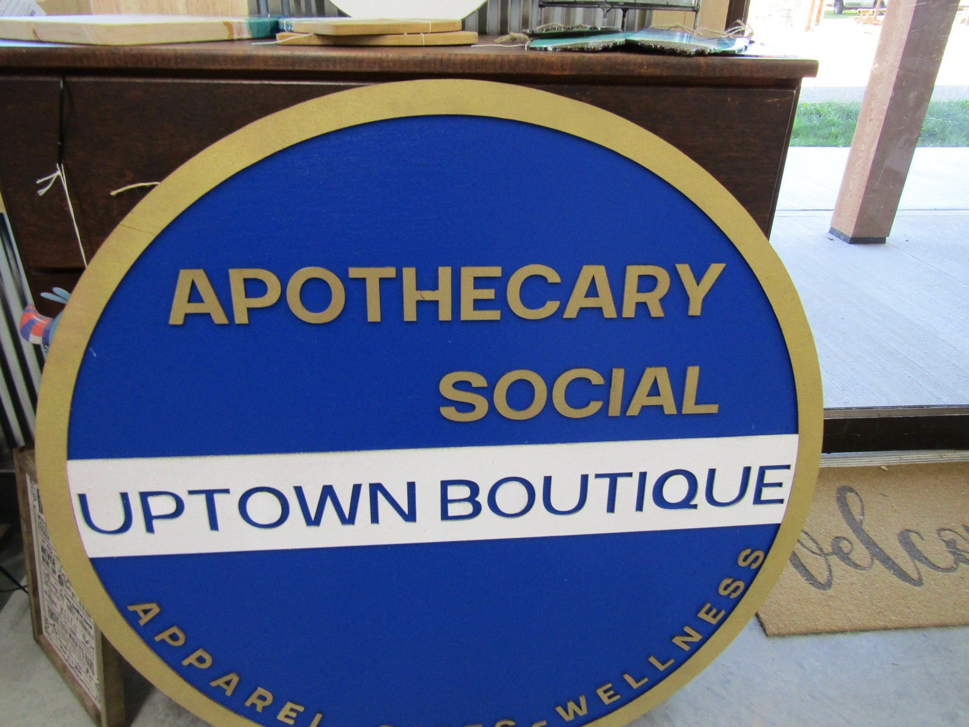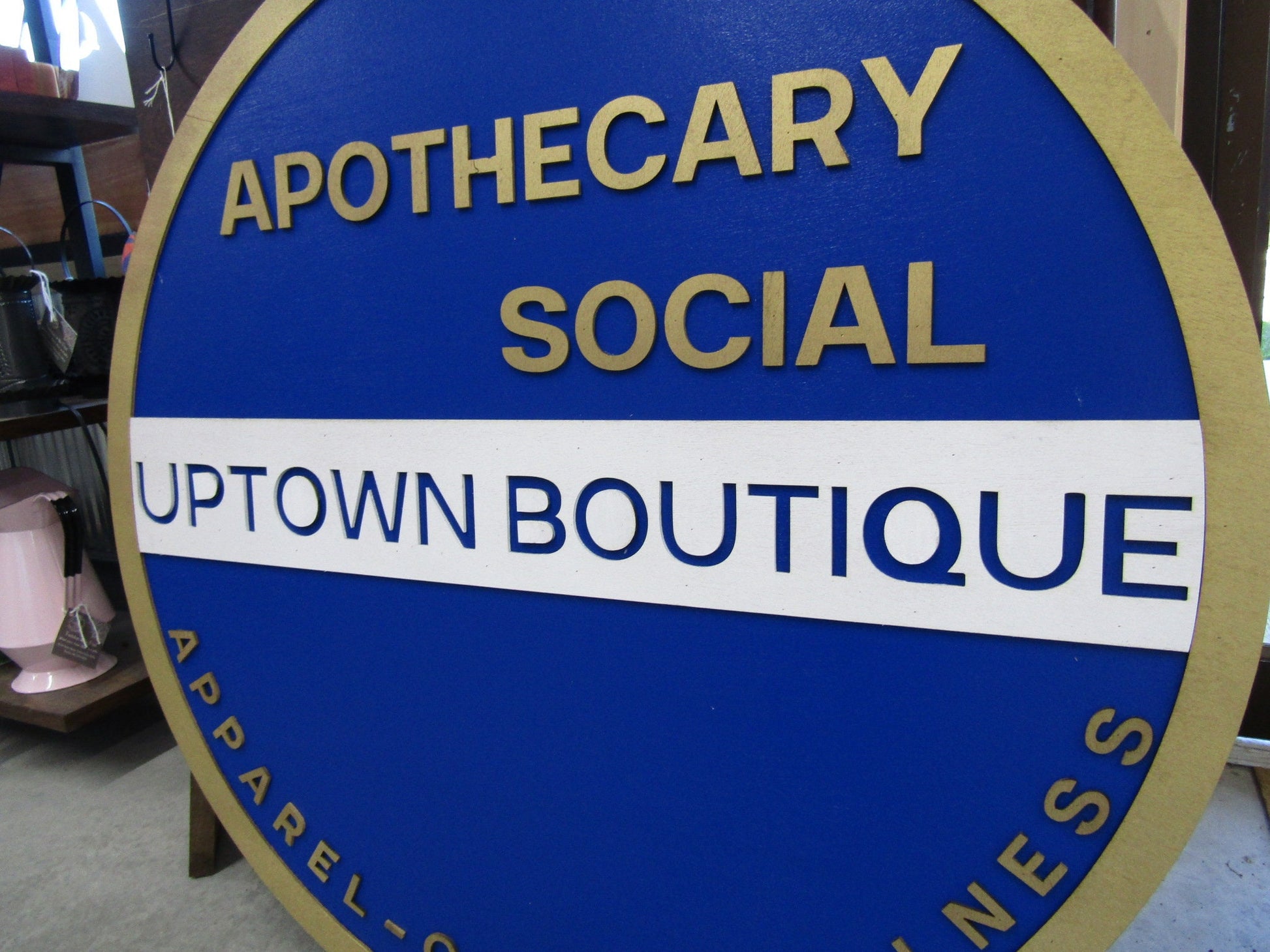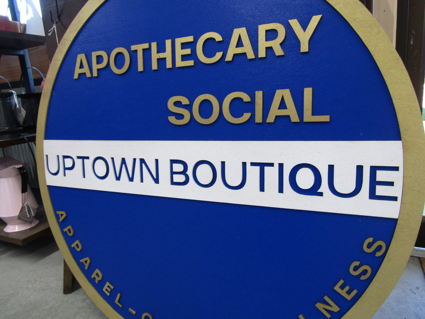 Custom Sign Round Business Uptown Boutique Social Commerical Signage Single Or Double Sided Made to Order Store Logo Circle Wooden Handmade