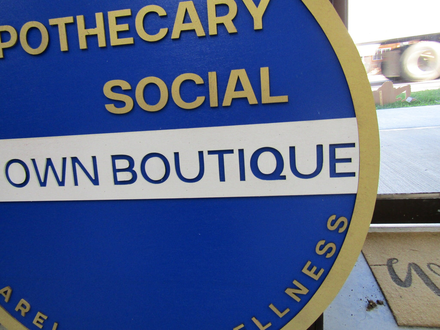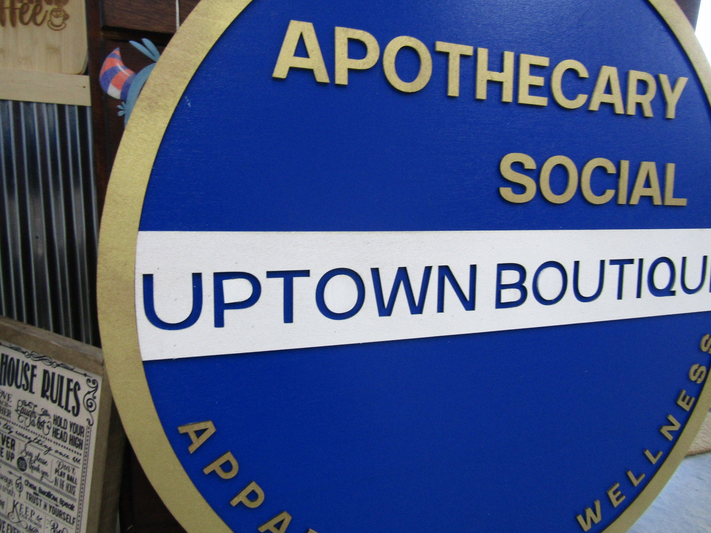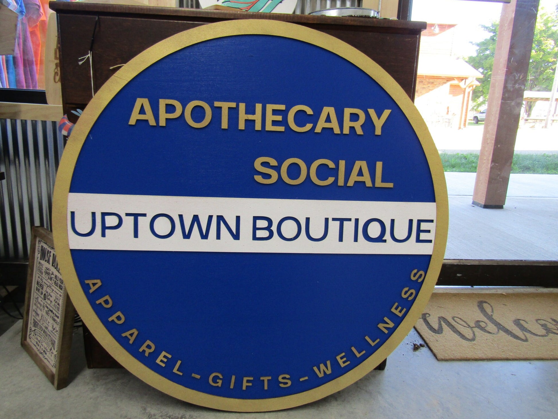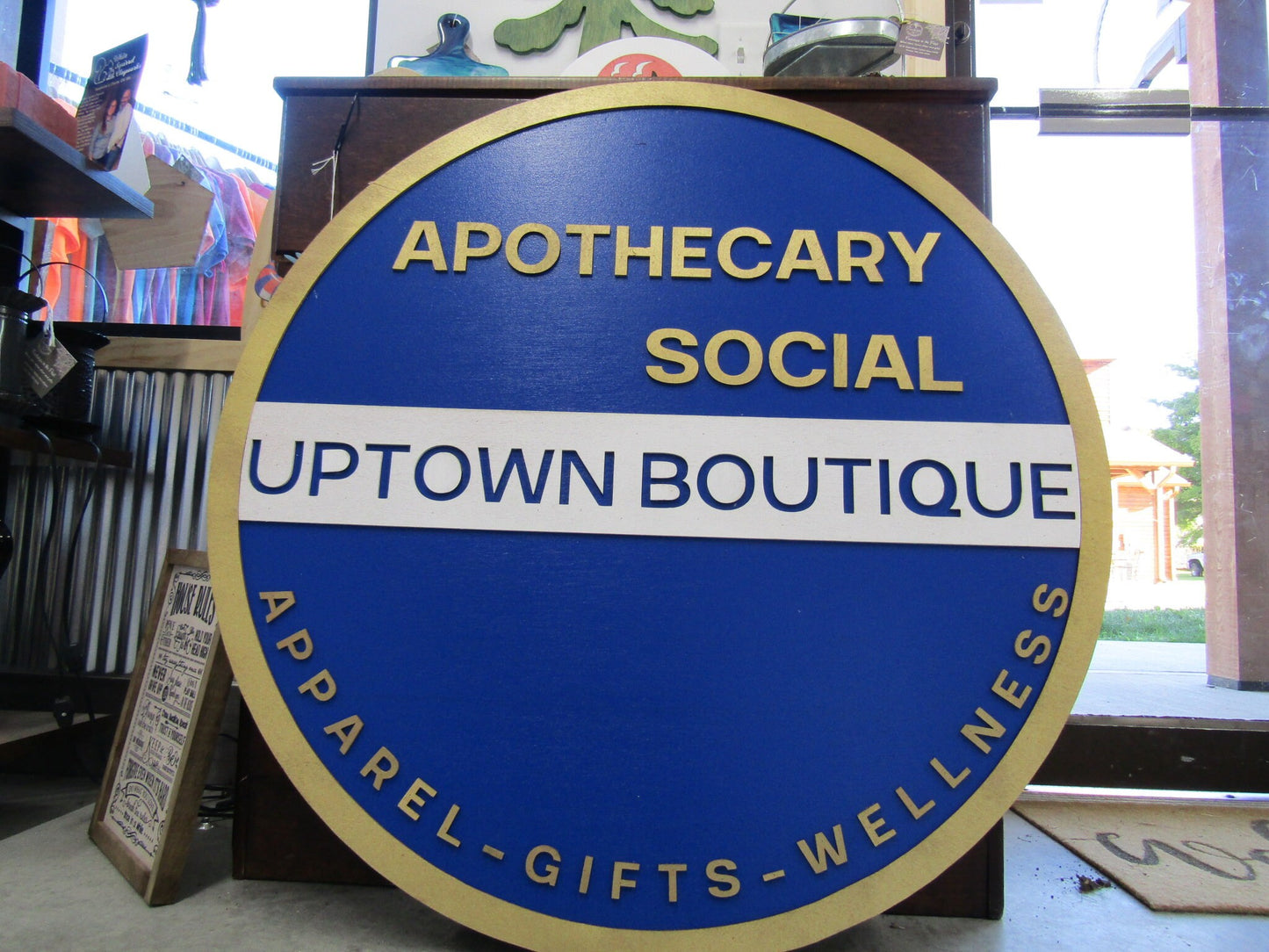 Custom Sign Round Business Uptown Boutique Social Commerical Signage Single Or Double Sided Made to Order Store Logo Circle Wooden Handmade