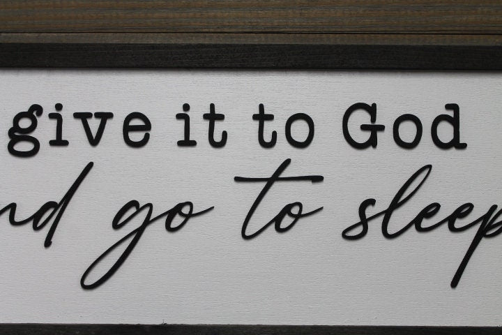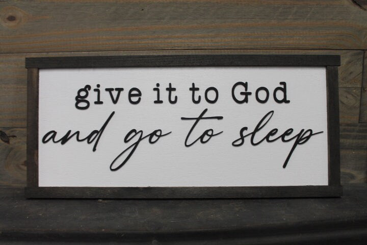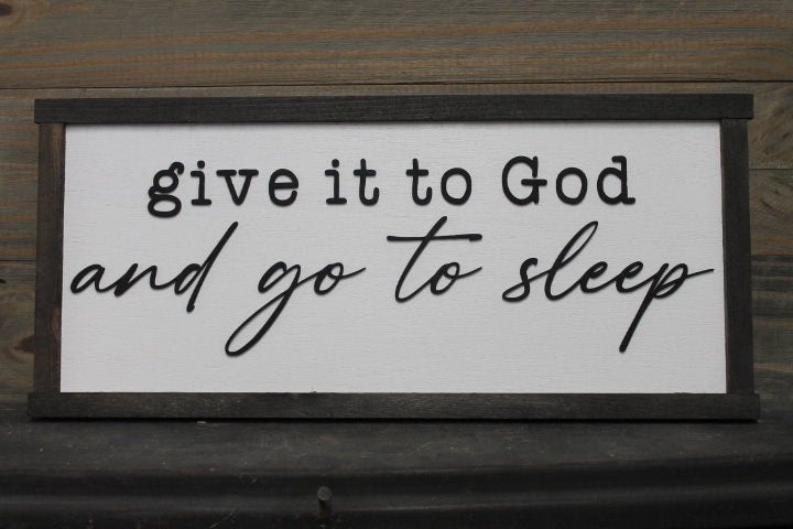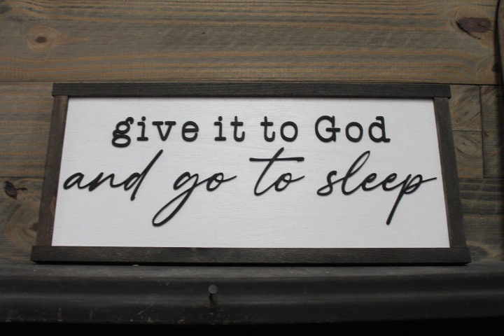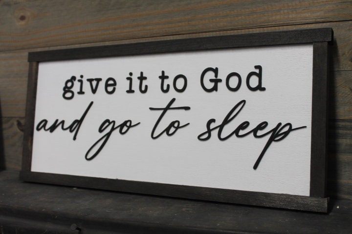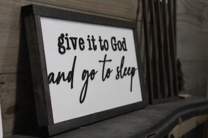 Give it to God and go to sleep Christian Cross Jesus Biblical Home Decor prayer 3D Handmade Wall Art Inspirational Raised Wooden Sign