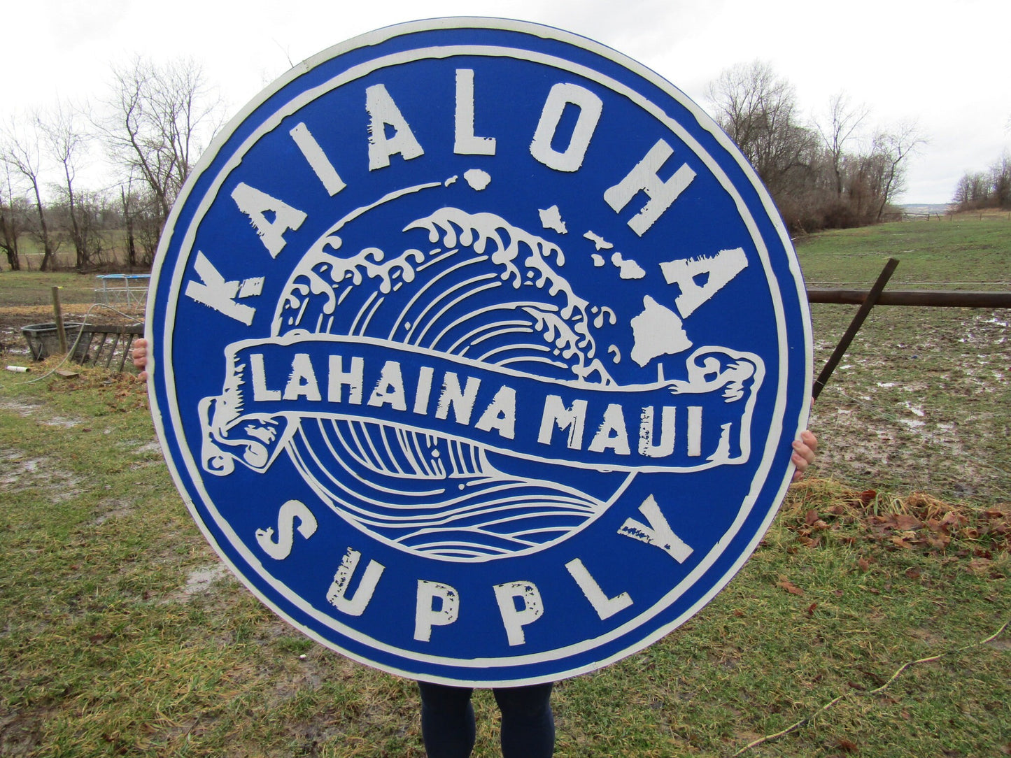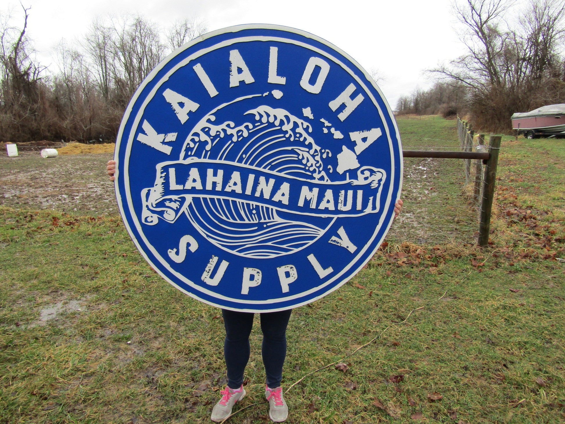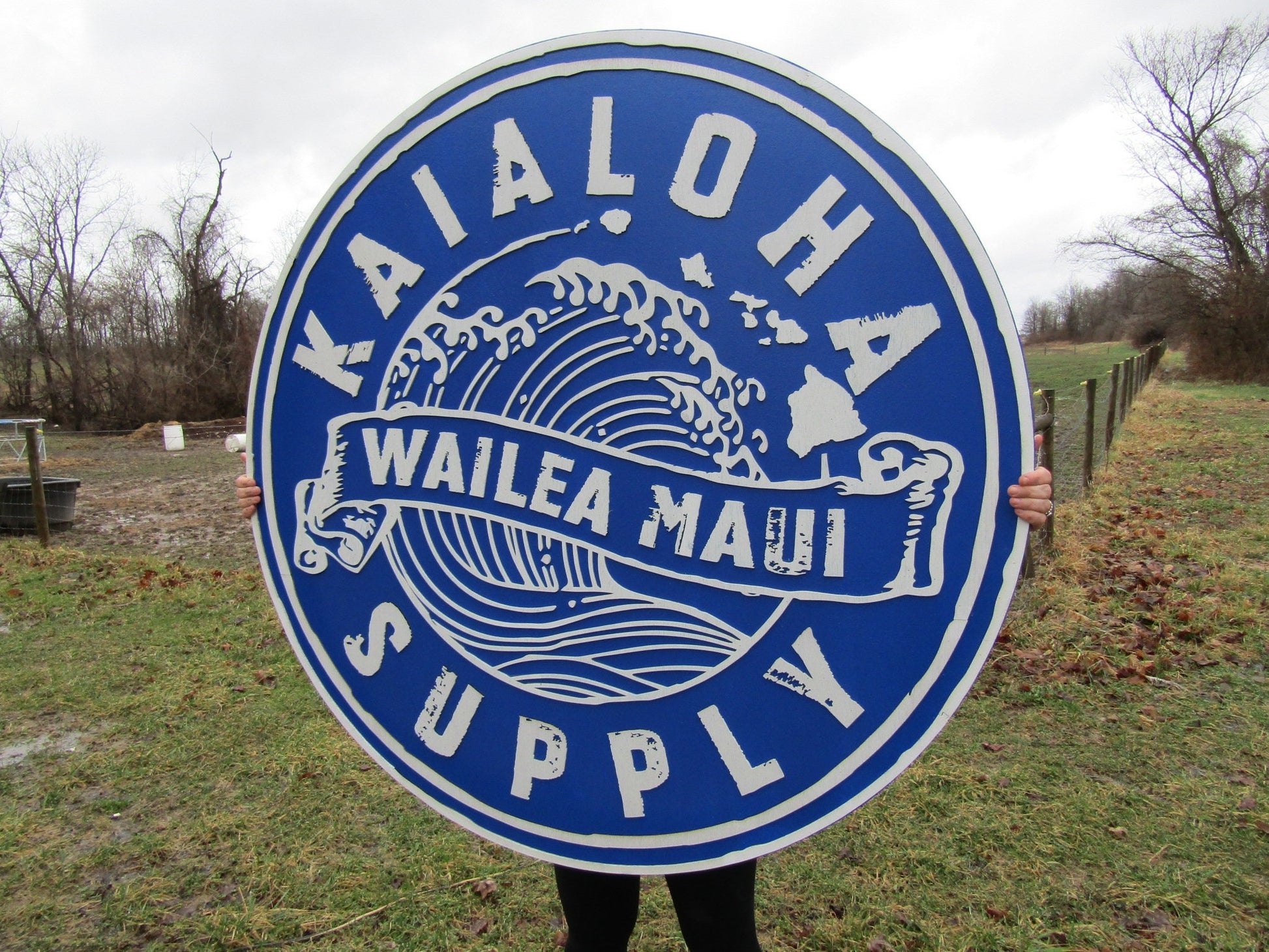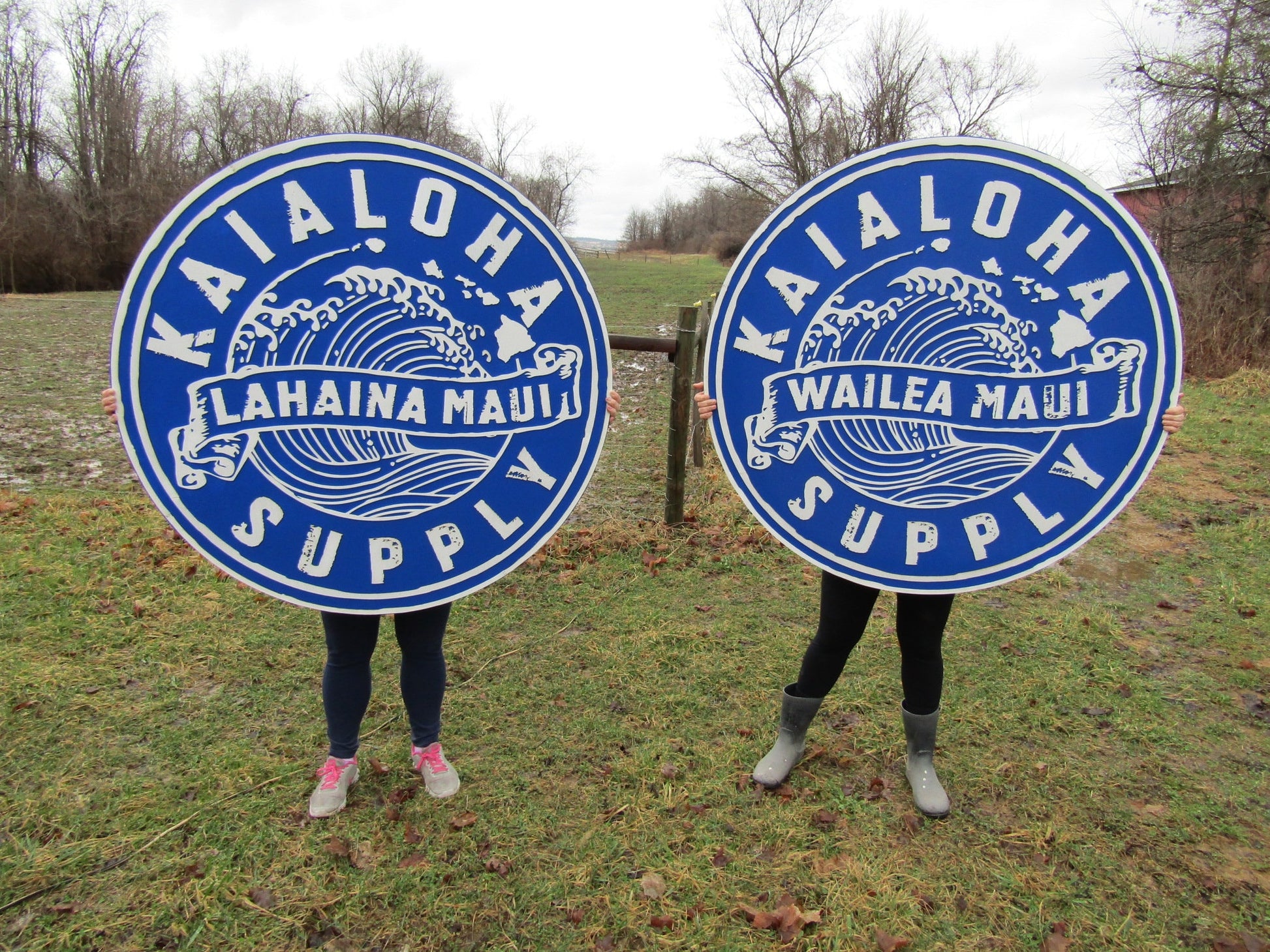 lot of 2 Extra Large Round Custom Signs Commerical Signage Signs Matching Business Logo Free Ship To Hawaii Made To Order Supply Store Ocean