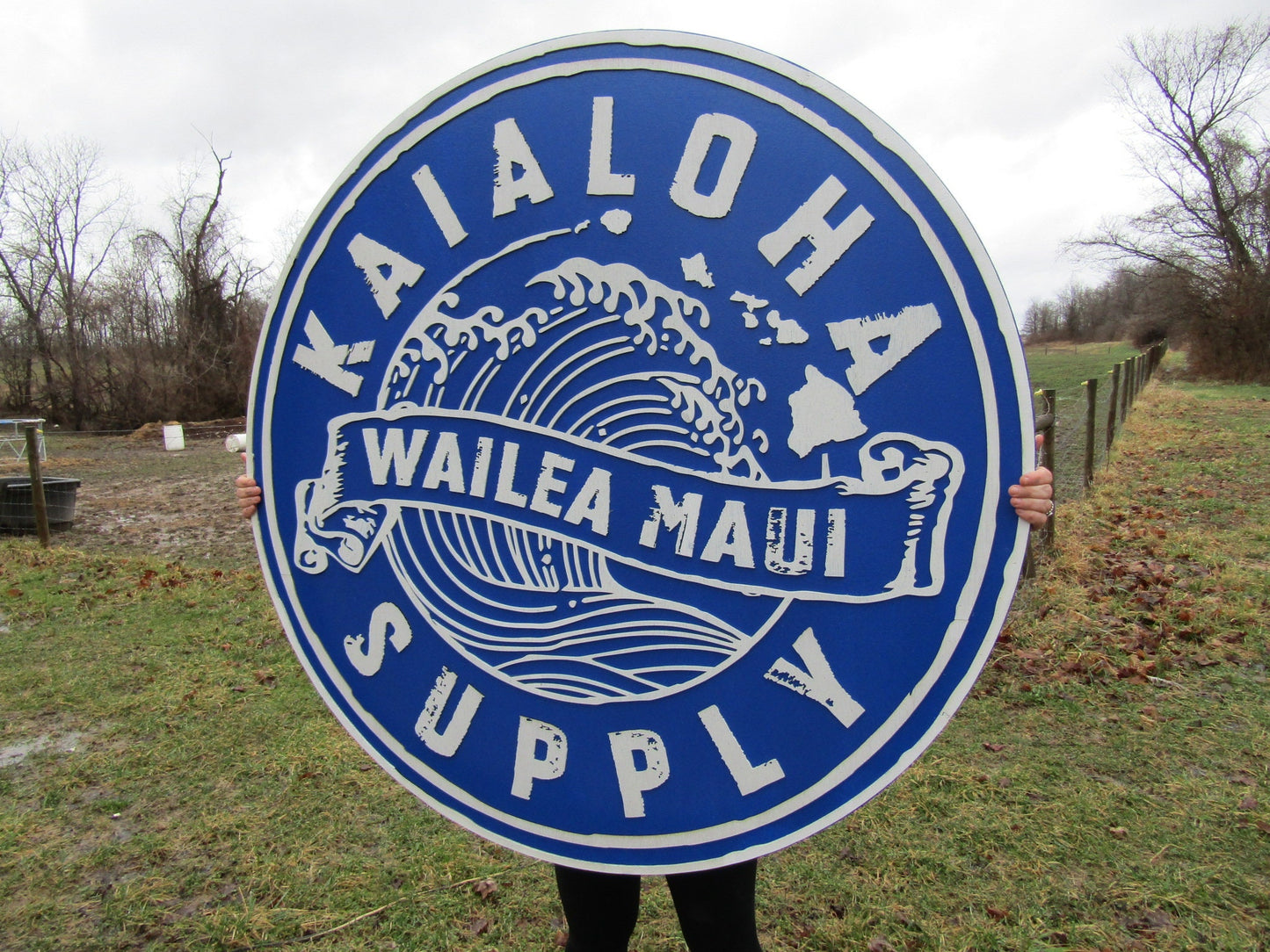 Extra Large Round Custom Signs Commerical Signage Two Signs Matching Business Logo Free Ship To Hawaii Made To Order Supply Store Ocean 3D