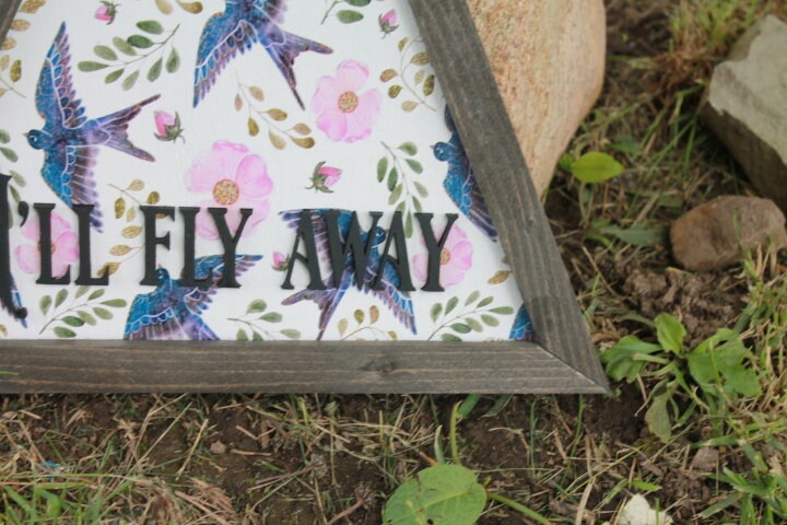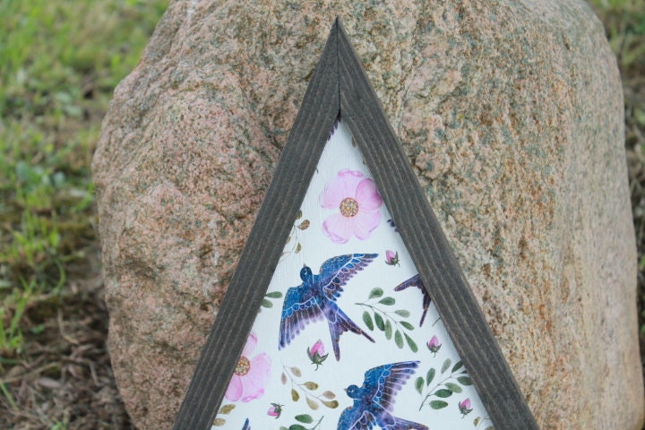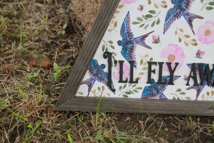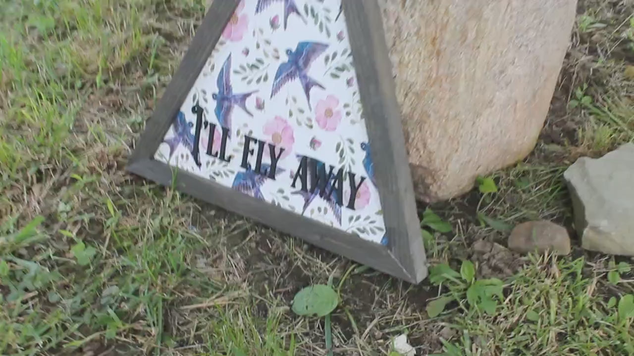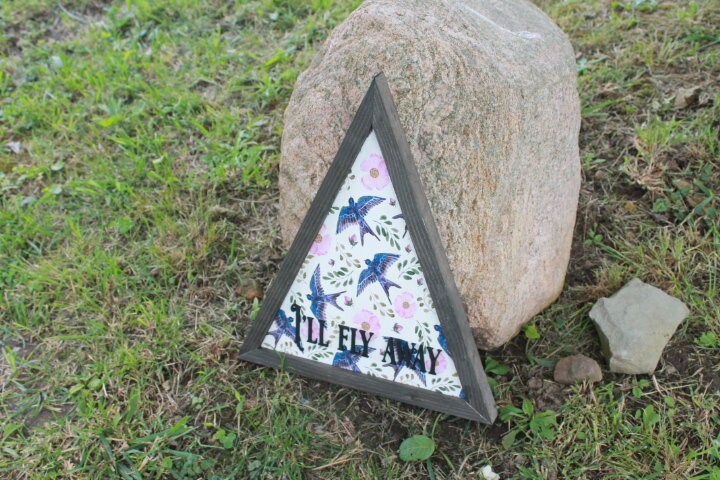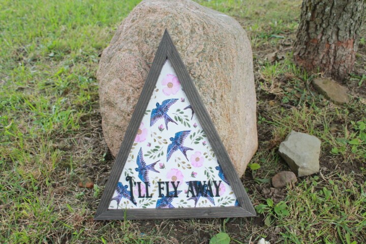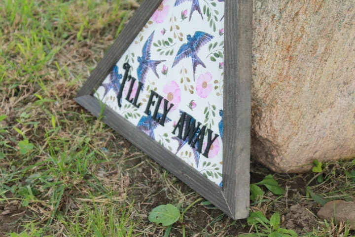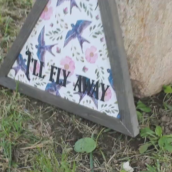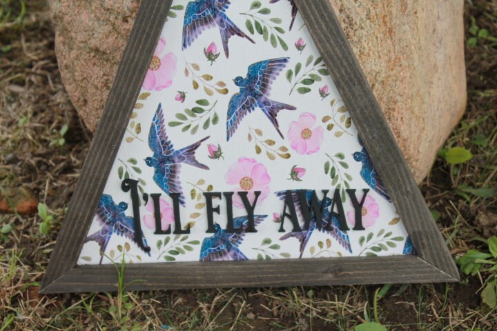 Sparrow Ill Fly Away Printed Cut out Floral Triangle Handmade Framed 3D Handmade Art Decor Wooden Sign Raised Layered Sign