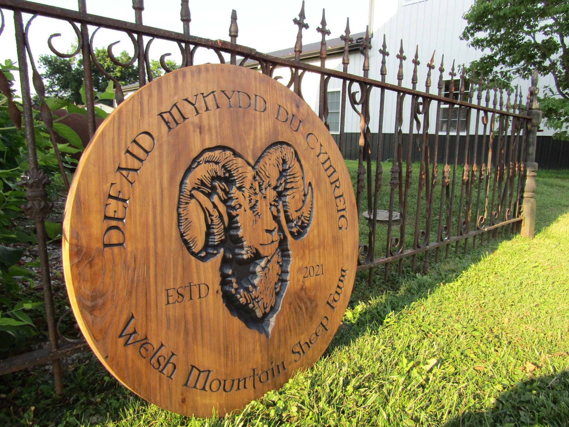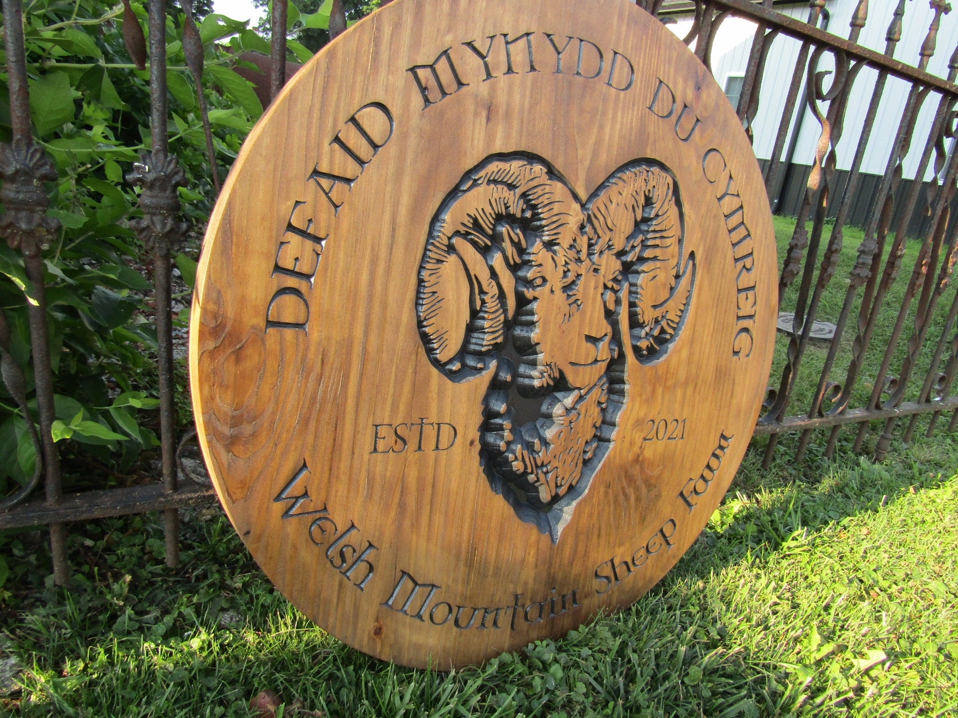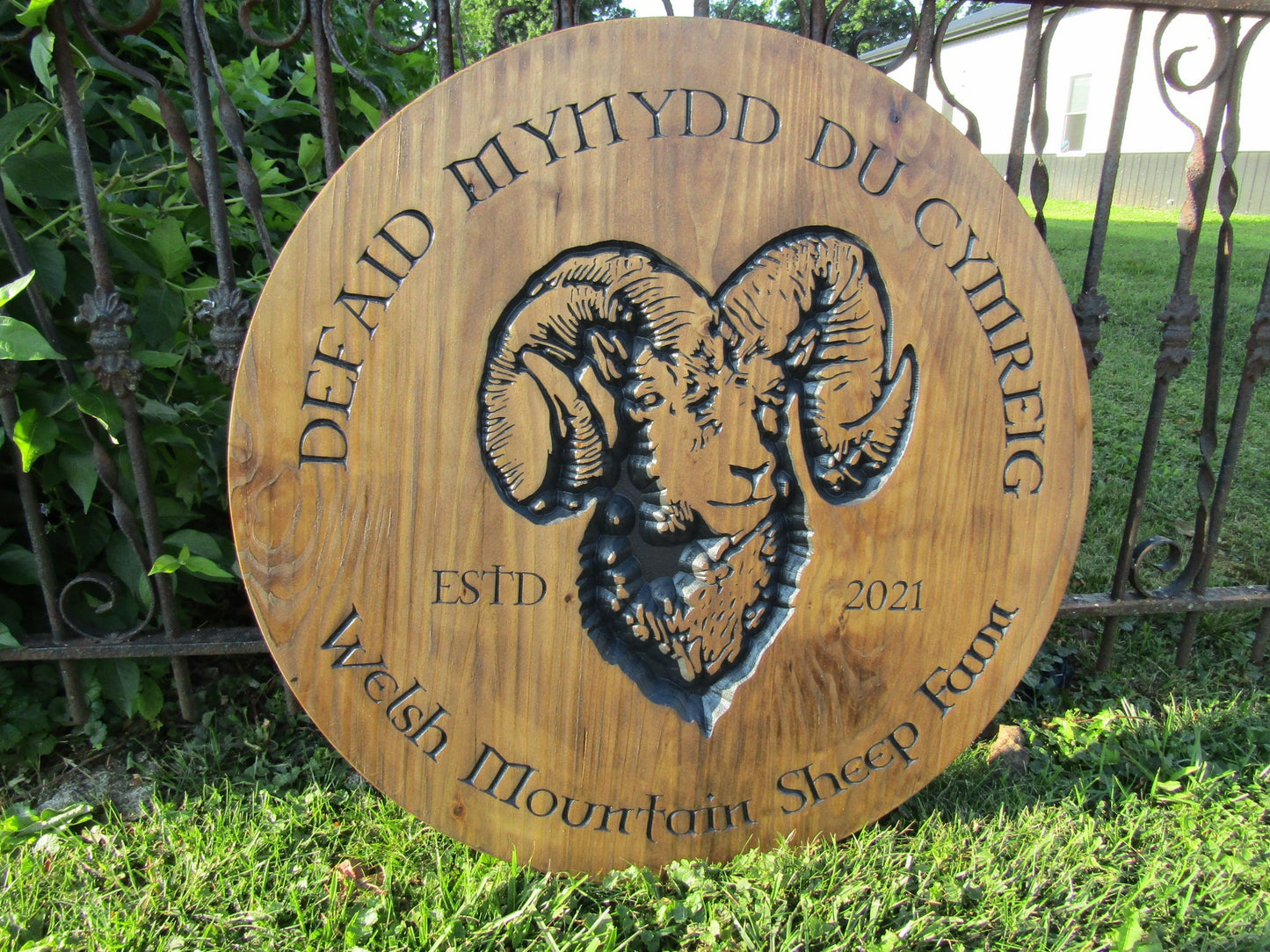 Welsh Sheep Farm Engraved Routed Custom Ram Livestock Round Commerical Signage Homestead Pine Wooden Sign Barn Stained Detailed Your Logo