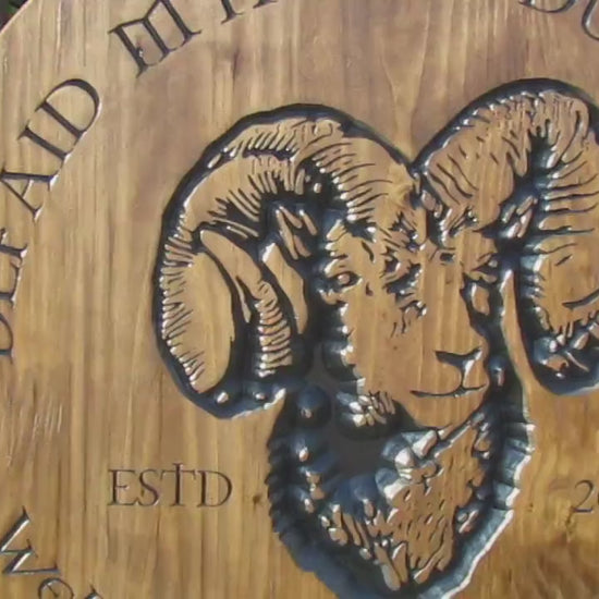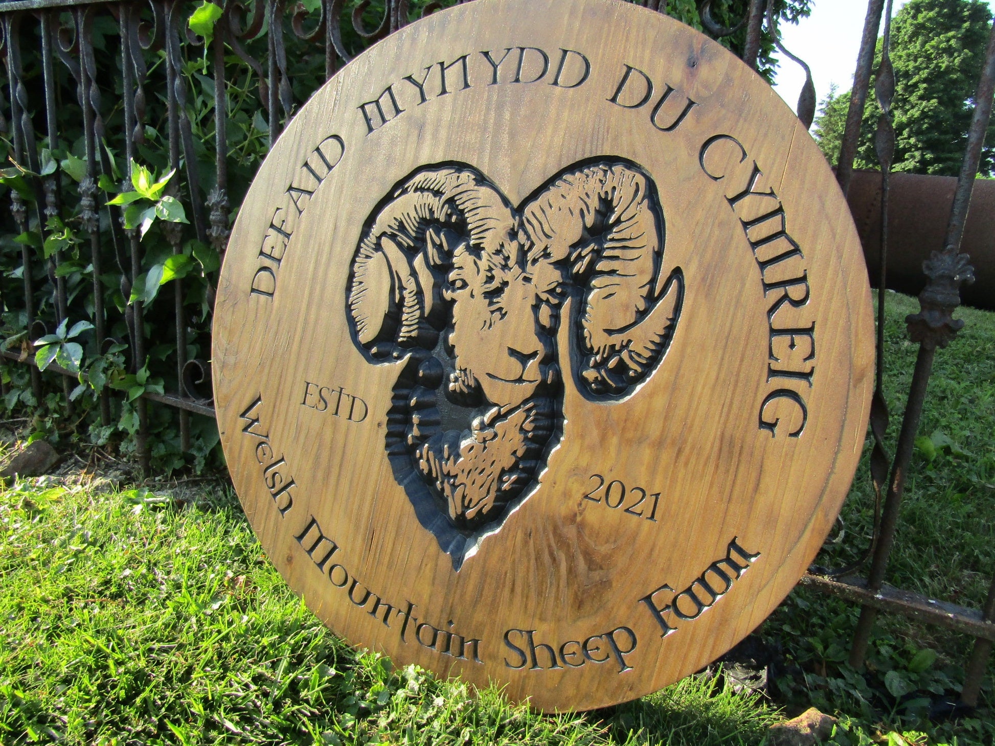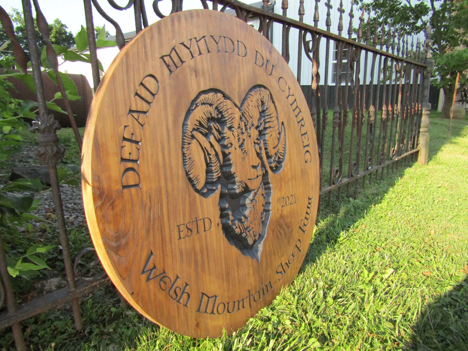 Welsh Sheep Farm Engraved Routed Custom Ram Livestock Round Commerical Signage Homestead Pine Wooden Sign Barn Stained Detailed Your Logo