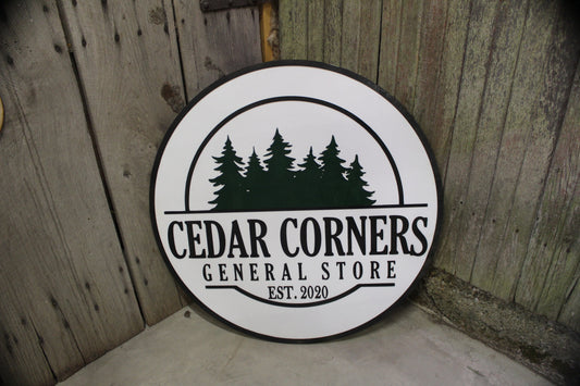 General Store Sign Small Business Round Sign Raised Text Commercial Signage 3D Your Logo Extra Large Rings Established Pine Trees Custom