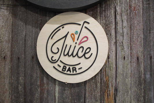 Round Juice Bar Sign Juice Stand 3D Text Large Contemporary Business Sign Straw Fruit Design Wall Art Decoration Wood Sign Lemonade