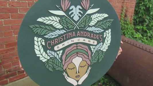 Custom Skincare Beautiful Garden Face Hands Actual Logo Spa Wellness Handmade Wooden Round Sign Commerical Signage 3D Natural Tropical
