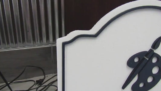 Art Studio Paint Brush Pallette Custom Personalized Contoured Signage Shop Business Sign Wooden Handmade 3D Raised Text Logo Minimalist