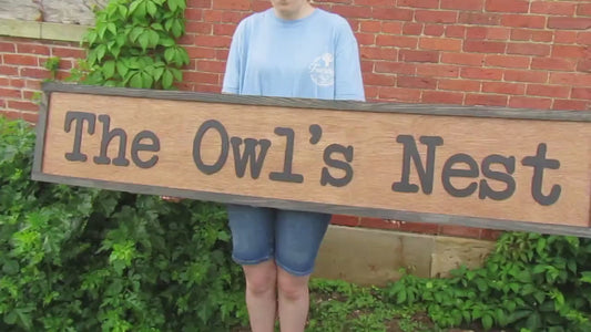 Oversized Large Custom Wooden Sign The Owls Nest Outdoors Commerical Professional Signage Personalized Typewriter Font Bird Handmade 3D