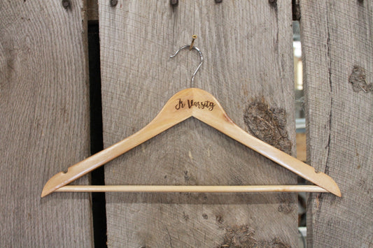 Varsity Jacket Clothes Hanger Engraved Hard Wood Sturdy Ceremony Celebration Gift High School Letter