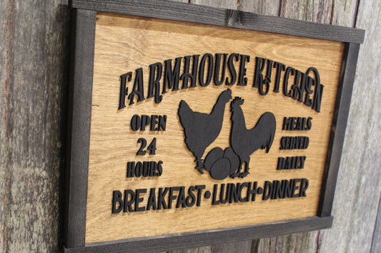 Farmhouse Menu Kitchen Wood Sign Chickens Open 24 Hours Meals Served Daily 3D Raised Text Framed Primitive Cabin Rustic Sign Chick Eggs