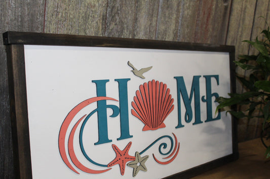 Handmade Beach House Sign: 3D Starfish Seashell Wooden Decor