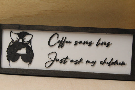 Funny Mom Coffee Sign: 3D Raised Letter Wooden Framed Decor