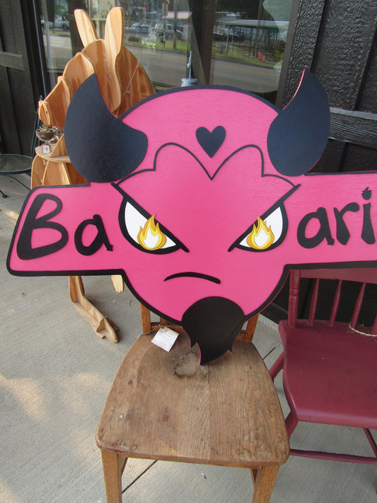 Custom Barista Cafe Sign: Handmade 3D Devil Logo, Pink Wooden Sign
