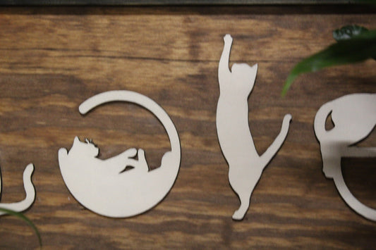 Love Spelled with Kittens Cats Cat Silhouette Pet Rustic Primitive Cat Lover Gift Wood Sign 3D Raised Image White Brown Frame Decoration