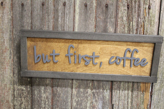But First Coffee Wood Sign 3D Raised Text Coffee Bar Decoration Wall Art Wood Farmhouse Rustic Primitive Simple Wall Decoration Phrase