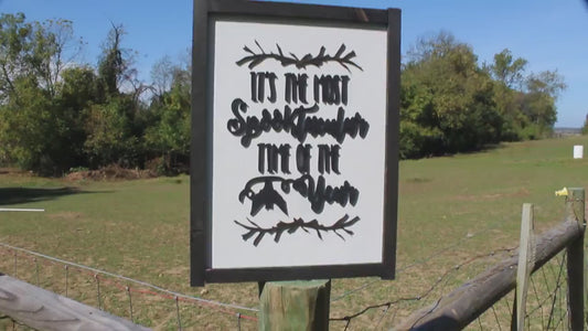 Halloween Spooky Season Spooktacular Sign Time Year Black and White Sticks Bats Chic Cursive Words Sayings Framed 3D Lettering Sticks Wood