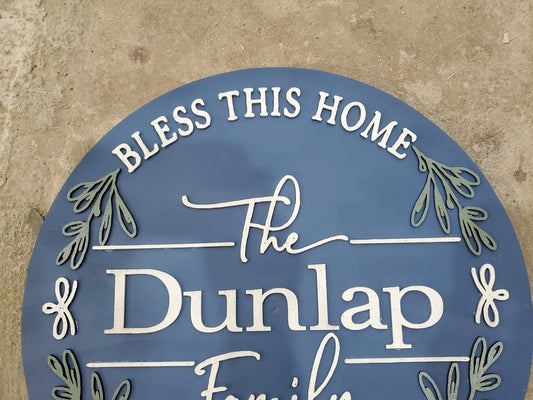 Custom Home Last Name Family Name Sign Bless this Home Door House Warming Established Circle Plaque Round Large 3D Raised Image Laser Cut