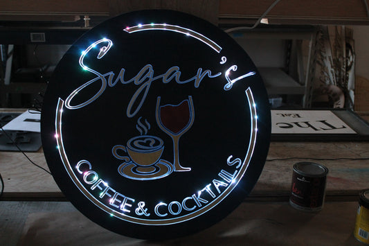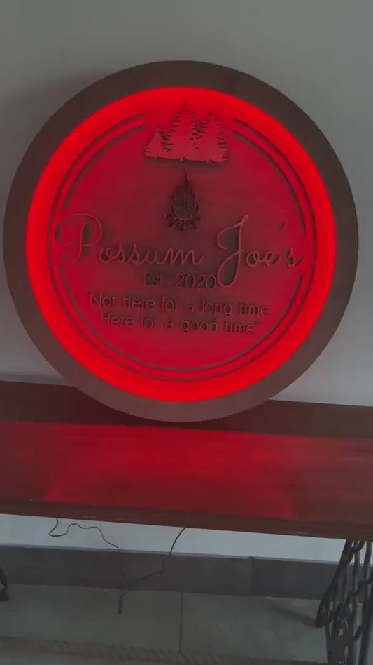 led lit custom wood sign. like a Neon light personalized to your logo or saying bar light