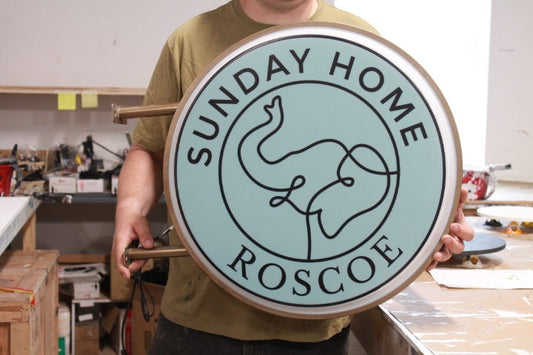 Home Store Elephant Line Art Minimalist Custom Outdoor Round LED Light Blade Sign Mounted Circle Commerical Signage Printed Business