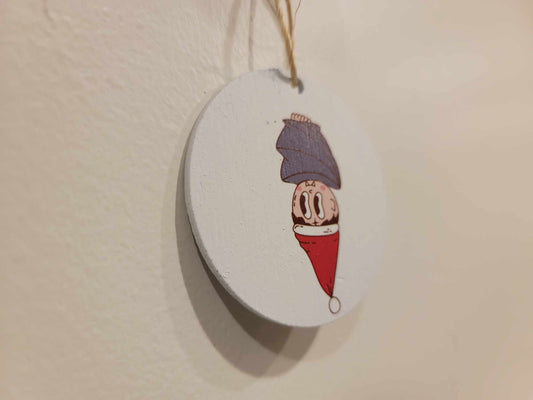 Cute Mermaid Santa hat Cryptic Ornament Collector Mythical Printed Keychain Giftable Gift for Him Gift for her Wooden