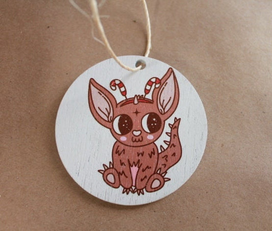 Little Monster Cute Candy Cane Cartoon Festive Cryptic Ornament Mythical Printed Keychain Giftable Gift for Him Gift for her Wooden