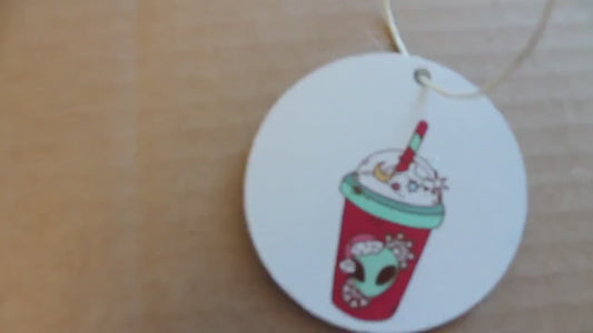 Extraterrestrial Alien Coffee Drink Cryptic Ornament Collector Mythical Printed Keychain Giftable Gift for Him Gift for her Wooden