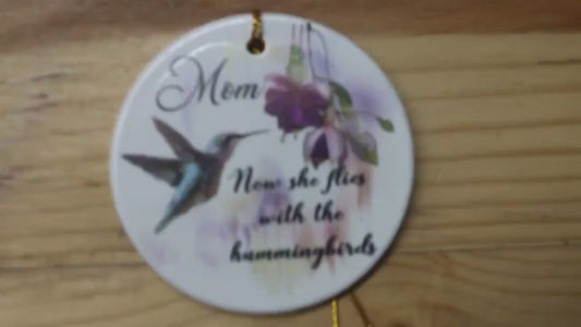 Mom Now She Flys With The Hummingbirds Ceramic Memorial Ornament Decor Floral Memories Gifts Cute Mother Day Hanging Circle Heaven