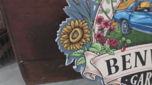Sustainable Textured Garden Vintage Car Oval Contour Custom Made Sign Your Logo PVC All Weather Outdoor Fade Resistant UV Printed Color