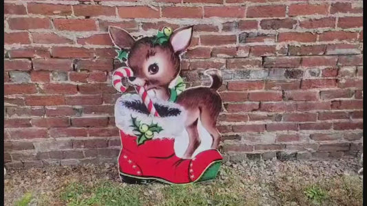 Vintage Yard Art PVC Reindeer Baby Santas boot Candy Cane Christmas Outdoor Weather Proof Printed image Yard Decor