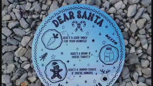 Dear Santa Tray Round Blue Cookies Milk Reindeer Carrot PVC Printed Christmas Day Treat Gift Snack Plate Leave for Santa