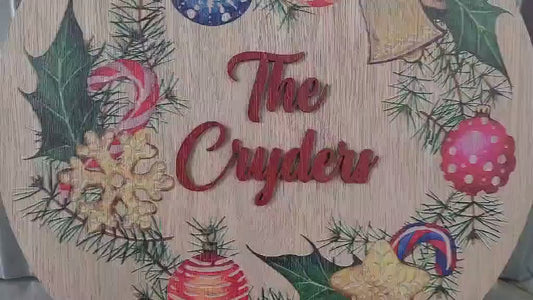 Handmade Custom Wood Sign Your Logo Personalized Hanging Raised Letters Round Printed Image Family Name Wreath Christmas Holiday Seasonal