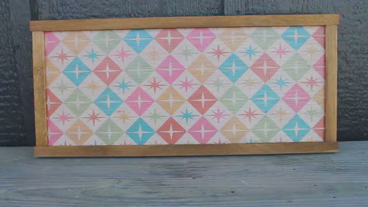 Vintage MCM Stars Bright Fun Colorful Printed Image Handmade Home Decor Retro Wall Art Hanging Framed Vintage