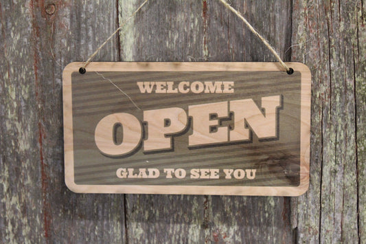 Open Closed Sign Green Welcome Glad To See You Sorry We'll See You Later Double Sided Close Vintage Wooden Front Door Entry Way