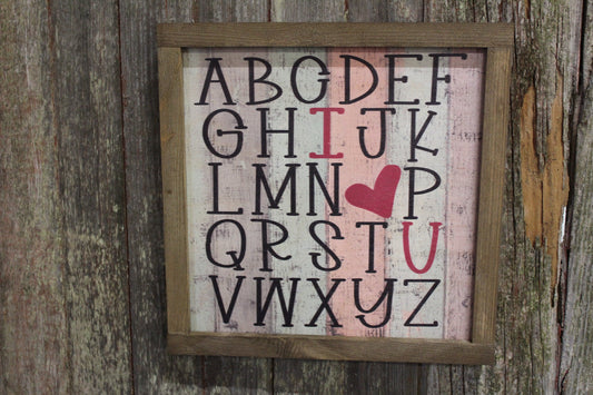 Valentines Wood Sign Alphabet ABC's Heart Sweetest Day Valentines Day I Heart You I Love You Shiplap Print Art Farmhouse Primitive Rustic