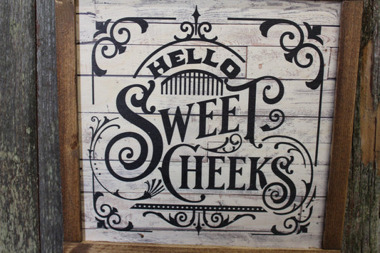 Hello Sweet Cheeks Bathroom Wood Sign Décor Print Wall Art Decoration Wall Hanging Farmhouse Rustic Shiplap Funny Humor Retro Scroll