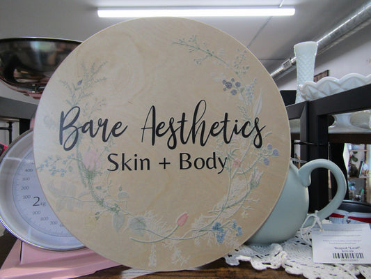Custom Bare Aesthetics Skin and Body Round Floral Lightweight Business Small Shop Printed Wood Your Logo Circle Booth Vendor Table Wall Sign