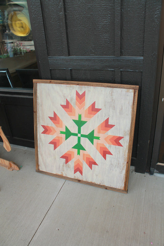 Tulip barn quilt primitive farm decor orange red and green white wash made from wood outdoor hang in garden star flower
