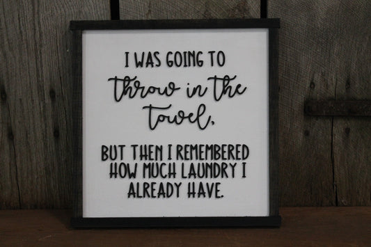 Laundry Room Funny Sign Throw in the Towel Humor Funny Too Much Laundry Cleaning House Work Wood Primitive Wall Decor Raised Text